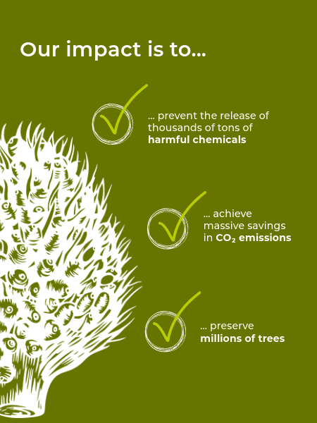 Sustainable, environmentally beneficial, price competitive and high qualitative pulp while saving the world’s forests.